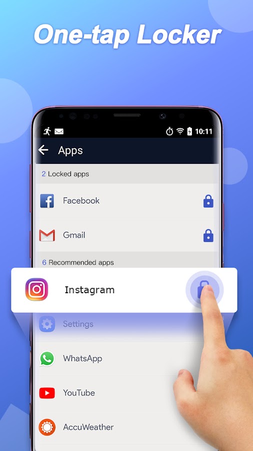С помощью блокировки безопасности — AppLocker (AppLock) вы можете заблокировать такие приложения, как Facebook, WhatsApp, Snapchat, Messenger и любое приложение по вашему выбору, включая галерею, настройки телефона и магазины приложений!