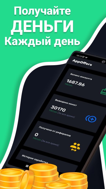 Загрузите AppOffers и начните зарабатывать деньги прямо сейчас — без вложений и с быстрым выводом средств!