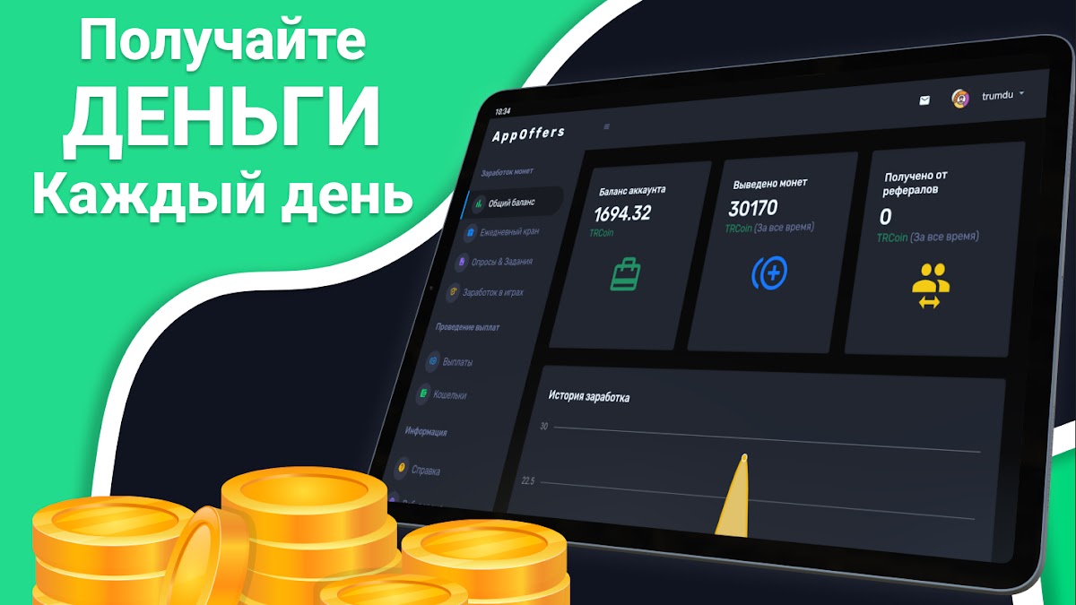 AppOffers — это не просто способ заработать деньги, но и возможность получать криптовалюту. Заработанные TRCoin можно обменять на реальные деньги или использовать для перевода в криптовалюту. Удобные и быстрые способы вывода средств помогут вам мгновенно получить заработанное.