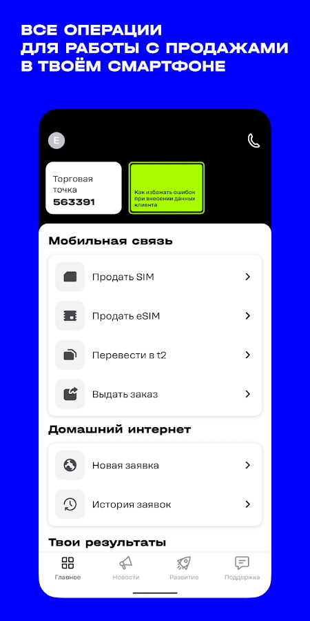 Приложение AppSeller t2 предназначено для сотрудников дилерской сети t2 и позволяет быстро и удобно регистрировать новые SIM-карты t2 с мобильного устройства без необходимости заполнения бумажного договора.