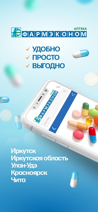 Закажите лекарства, витамины, косметику и всё необходимое для здоровья — быстро, удобно и по выгодным ценам. Приложение интернет-аптеки ФАРМЭКОНОМ объединяет более 250 аптек в Красноярске, Иркутске, Улан-Удэ, Чите, Братске, Ангарске и других городах и посёлках Иркутской области. Сеть продолжает расти: каждый год открывается более 20 новых аптек.
