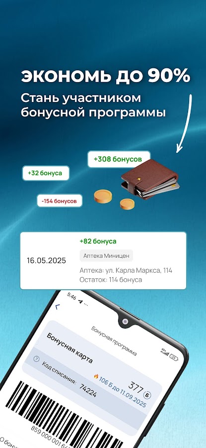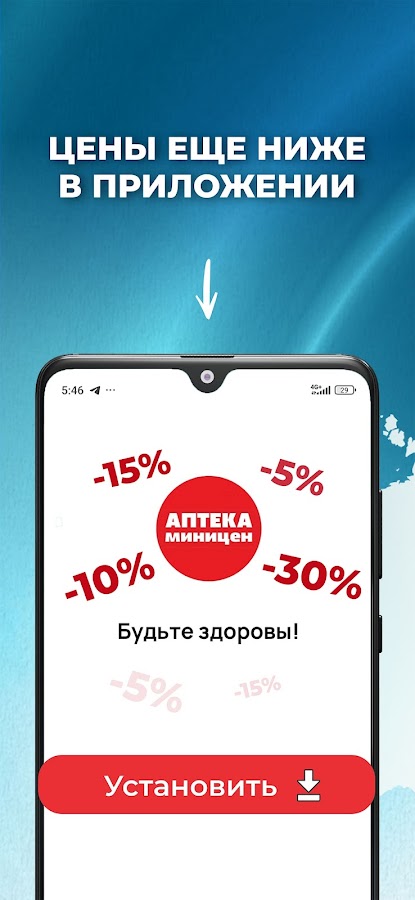 Приложение Аптека Миницен: скидки, акции и выгодные предложения на лекарства и товары для здоровья. Бронируйте онлайн и забирайте в ближайшей аптеке! При бронировании в приложении вы получаете скидку до 30%, также вы можете оформить индивидуальный заказ на редкие препараты. Единый логин на сайте и в приложении поможет легко перейти к использованию приложения, сохранив историю заказов и избранные товары с сайта. Теперь все преимущества «Аптека Миницен» у вас в телефоне.