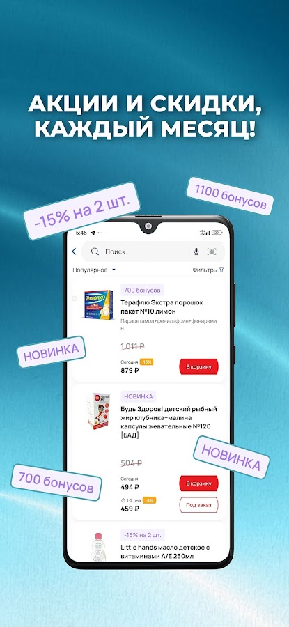 В каталоге можно найти широкий ассортимент лекарственных средств, БАДов, изделий медицинского назначения, медицинских приборов и аппаратов, товаров для красоты, ухода и гигиены, товаров для мамы и малыша, детского питания, ортопедии, оптики и контактных линз. Наличие товара в выбранной аптеке отображается в режиме реального времени. Быстрая работа и понятный интерфейс приложения делают процесс поиска и бронирования лекарств максимально удобным.