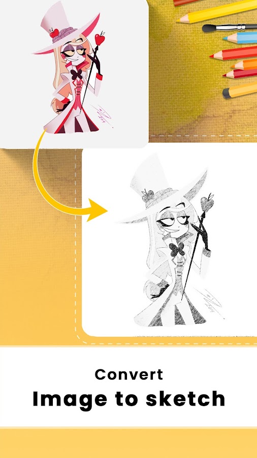 🖼️ Эскиз из галереи: в вашей галерее есть любимая фотография? Приложение позволяет превратить его в потрясающий нарисованный хазбин-отель. Это все равно, что дать вашим фотографиям новую жизнь, добавив немного художественного таланта.