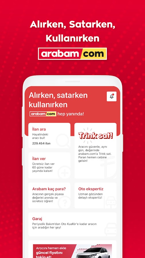 Загрузите мобильное приложение Arabam.com прямо сейчас, чтобы опубликовать свое объявление на крупнейшем автомобильном сайте Турции и купить автомобиль своей мечты.