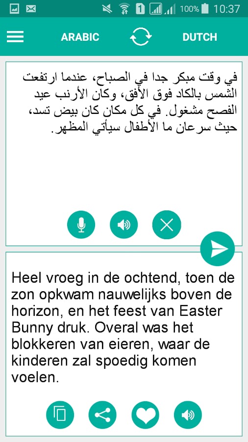 Бонусная функция — Изучите и освойте произношение, поскольку арабско-голландский переводчик имеет встроенную аудиофункцию. Слушайте переведенный текст и удобно общайтесь с друзьями, подругами, парнями, членами семьи или туристами.