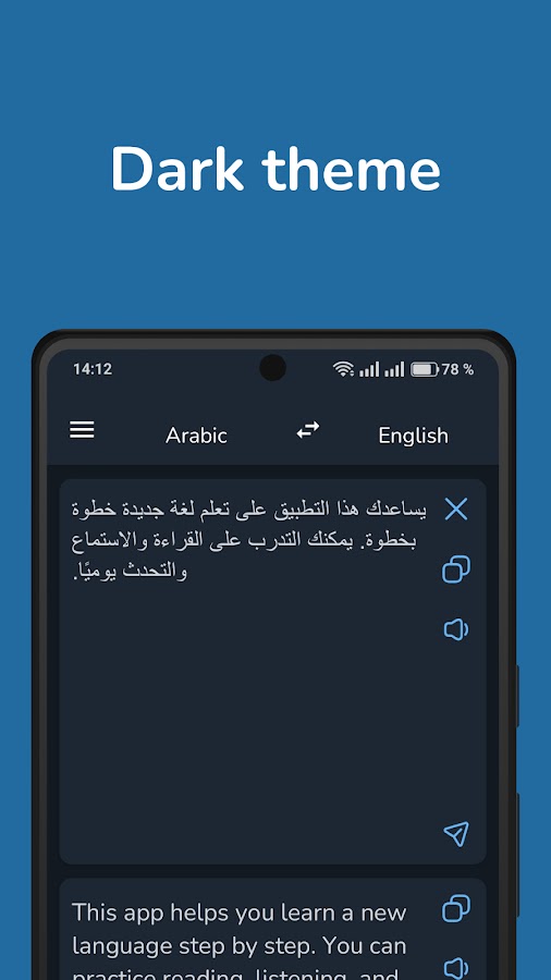Загрузите сейчас и общайтесь свободно с одним из самых быстрых и надежных арабско-английских переводчиков для Android.