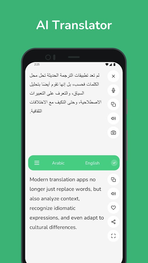 Раскройте силу языка с помощью нашего современного арабско-английского и англо-арабского переводчика! Независимо от того, являетесь ли вы студентом, путешественником или профессионалом, этот переводчик на базе искусственного интеллекта создан для того, чтобы сделать общение простым и удобным.