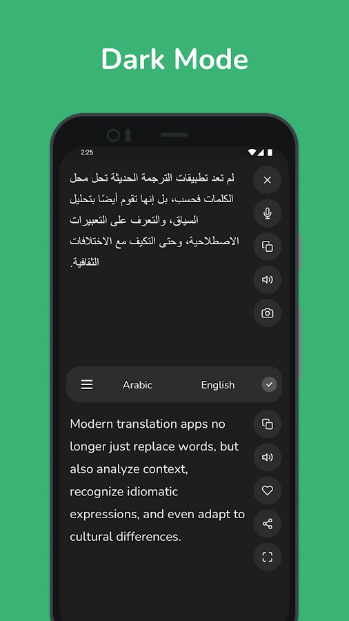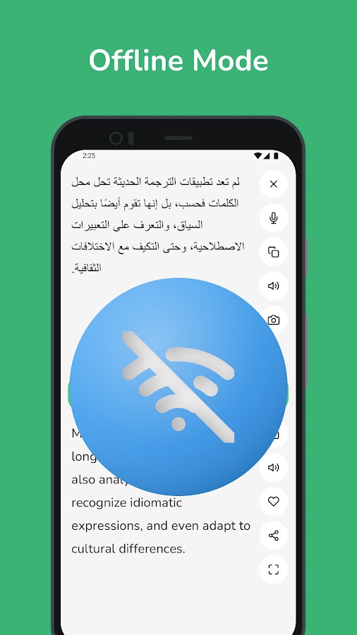 • Мгновенный перевод: получайте быстрые и точные переводы с арабского на английский и наоборот, идеально подходящие для повседневного использования.
