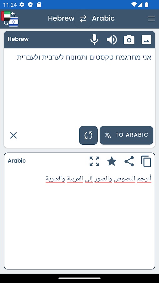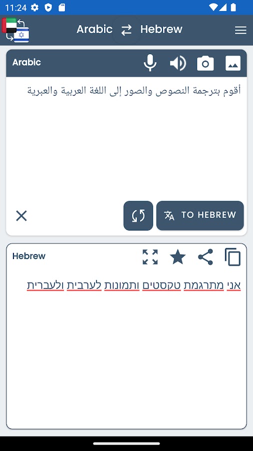 Лучшее бесплатное приложение для перевода текста с арабского на иврит и иврит на арабский.