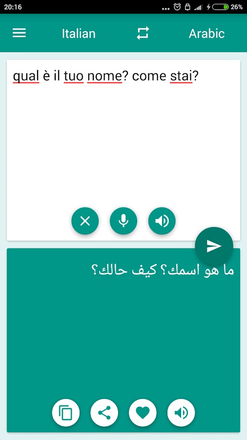Это бесплатный переводчик может быстро перевести с арабского на итальянский и итальянско на Арабский (العربية-المترجم الإيطالية, итальянский-арабо Переводчик) слов, а также полных предложений. Мгновенный перевод и полный действия из слов.