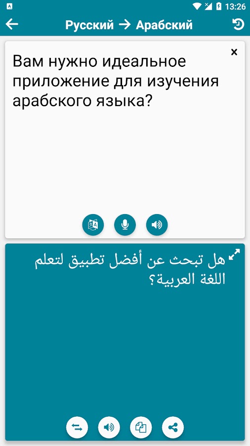 • Вы можете переводить с русского на арабский или с арабского на русский. (Переводчик работает онлайн)