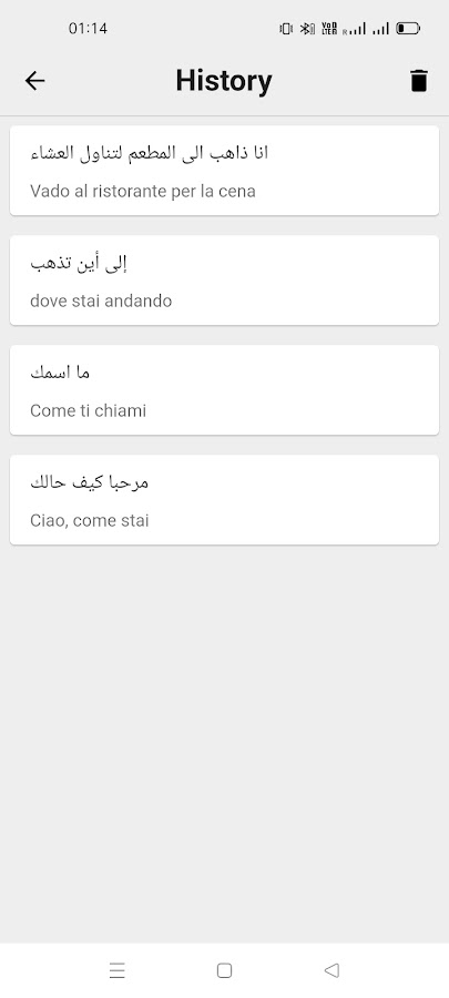 Простое и удобное приложение для перевода слов, предложений и текста с арабского языка на итальянский язык.
