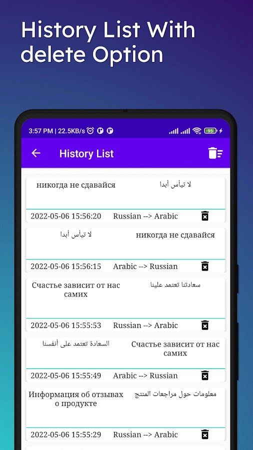 Арабский-русский переводчик позволяет пользователям говорить и переводить голос в текст (голосовой ввод). Затем автоматический голосовой переводчик быстро и точно распознает голосовой ввод пользователя, переведет непосредственно на заданный вами язык и прочитает результат перевода вслух с помощью функции преобразования текста в голос. Эта функция также позволяет переводить текст с вашего голоса, например, на русский или арабский. Также переводите с арабского на русский и с русского на арабский с помощью вашего голоса. В этом приложении также дается ответ с помощью функции «Проговаривать текст». Просто введите нужный текст и позвольте арабским или русским словам произнесите это вслух для вас. Вы можете услышать правильное произношение арабских слов и русских слов. Это помогает улучшить вашу разговорную арабскую и русскую речь. Теперь вы тоже можете говорить как носитель языка. Улучшите свой словарный запас прямо сейчас!.