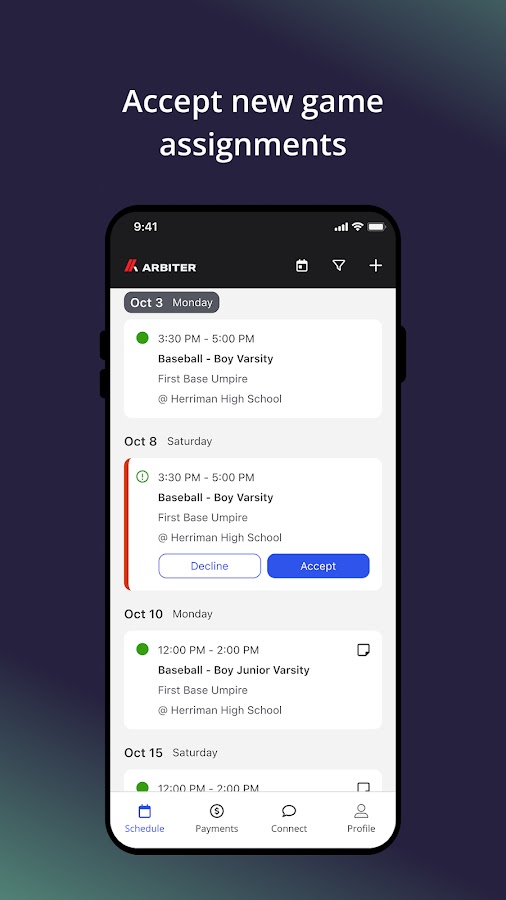 • Легко принимайте новые назначения на игры.