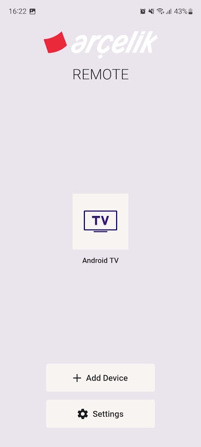 — Запустите приложение Arçelik Smart Control и нажмите кнопку «Добавить устройство». Если ваш телефон Android не может автоматически идентифицировать ваш Arçelik Smart TV, вы можете добавить свой телевизор, введя IP-адрес вашего телевизора с помощью кнопки «+».