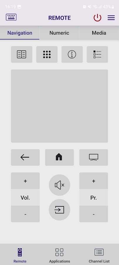 Приложение функционально разделено на несколько экранов: пульт, клавиатура, телегид и планы