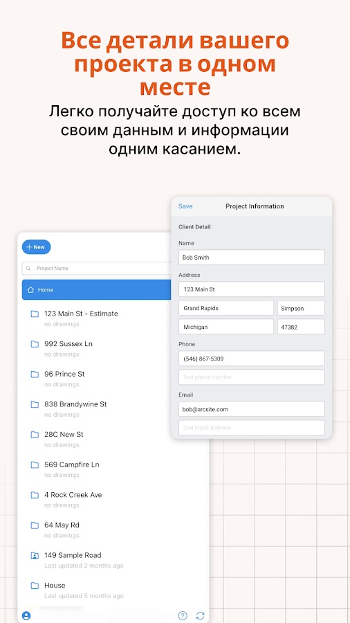 ВЫДЕЛЯЙТЕСЬ НАД КОНКУРЕНТАМИ — Выглядите профессионально, демонстрируя своим коллегам и клиентам впечатляющие CAD-чертежи планов этажей, сметы и подробные предложения — все это из ArcSite.