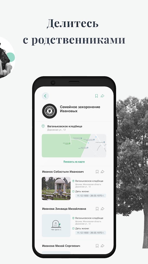 • Вся информация о захоронениях ваших родных надёжно хранится в одном месте.