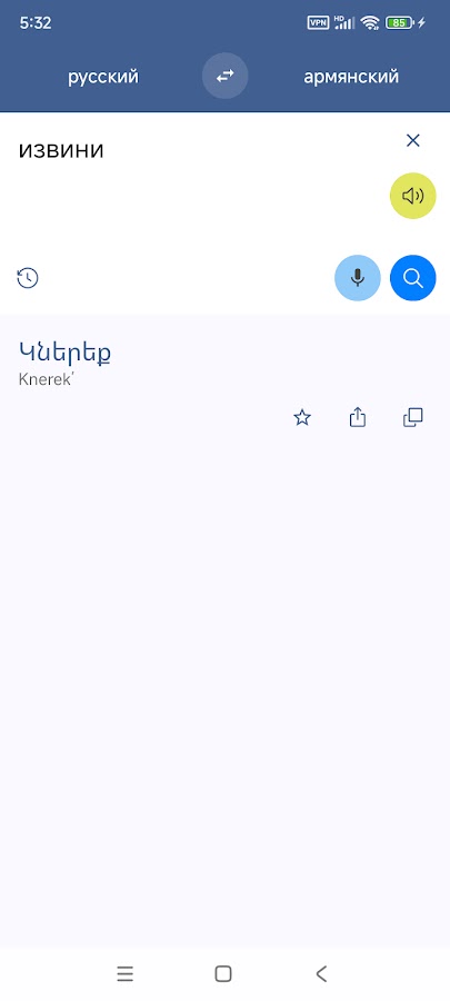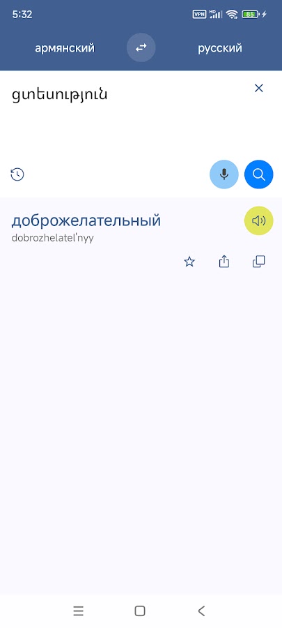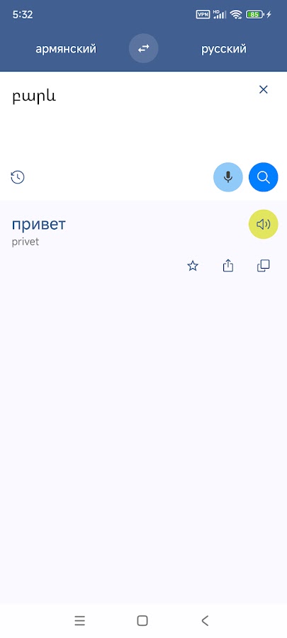 Армянский Русский перевод обеспечивает переводы сообщение между русском и армянском языках. Вы можете переводить слова и фразы, помогает изучать языки.
