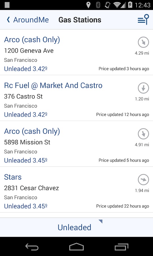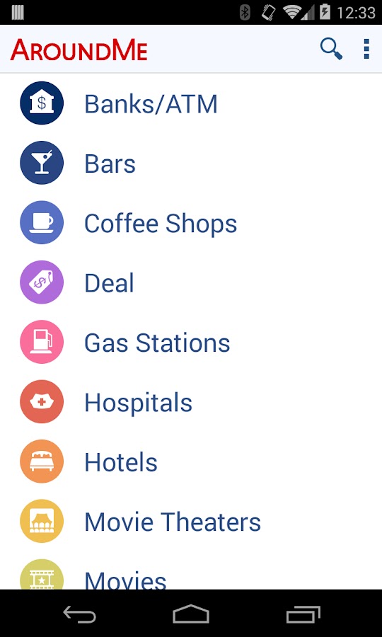 AroundMe показывает вам полный список всех предприятий в категории вы постучал вместе с расстоянием от того, где вы находитесь.