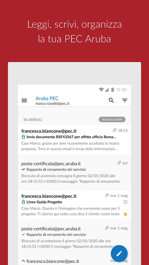 Aruba PEC — это бесплатное приложение Aruba, которое позволяет удобно и просто управлять почтовыми ящиками PEC даже со смартфонов и планшетов.