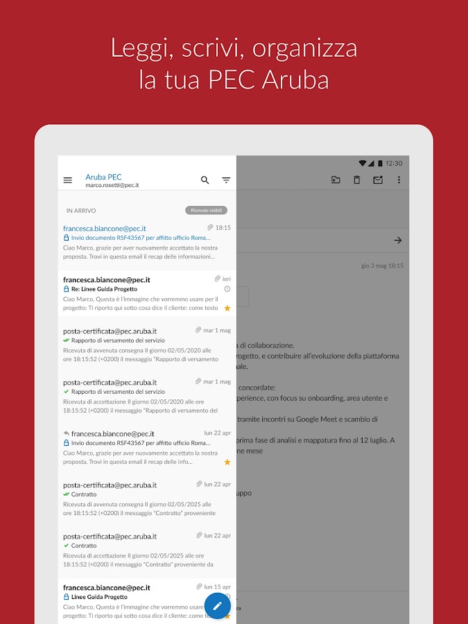 Надежный, удобный и простой в использовании, он позволяет читать, управлять и отправлять сообщения PEC на один или несколько почтовых ящиков, которые можно настроить в приложении.