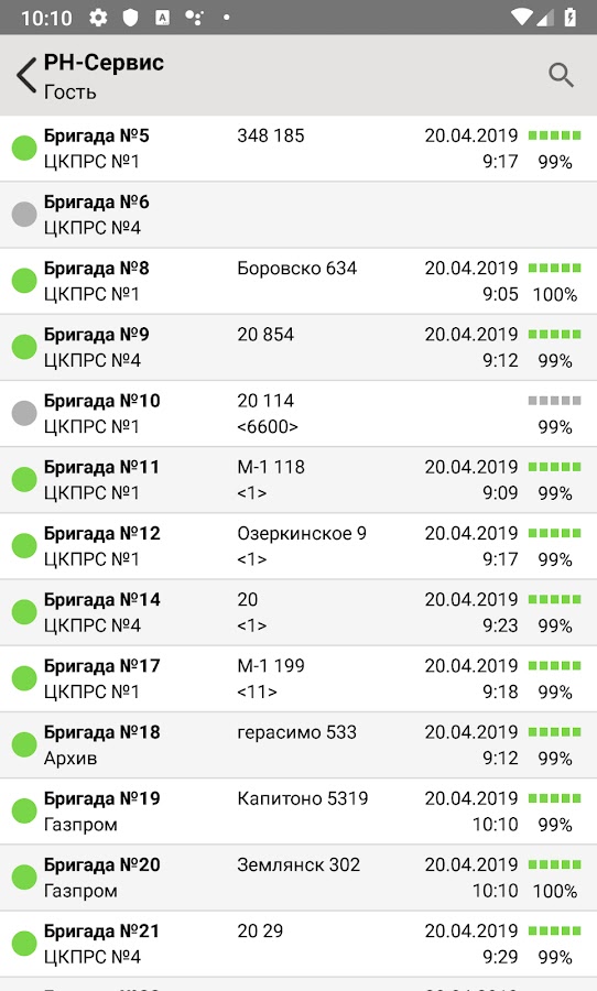 — отображение списка бригад, содержащих информацию об объекте и выполняемой работе;