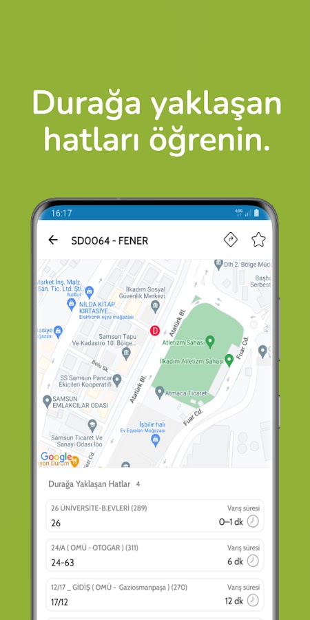 — Durağa yaklaşan hatları görüntüleyebilirsiniz.