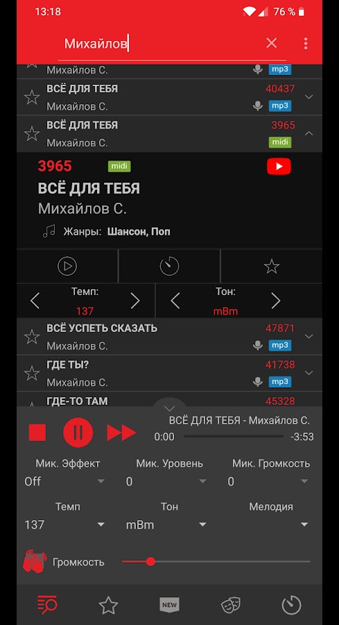 — управление параметрами воспроизведения фонограмм (громкость, тональность и пр.)