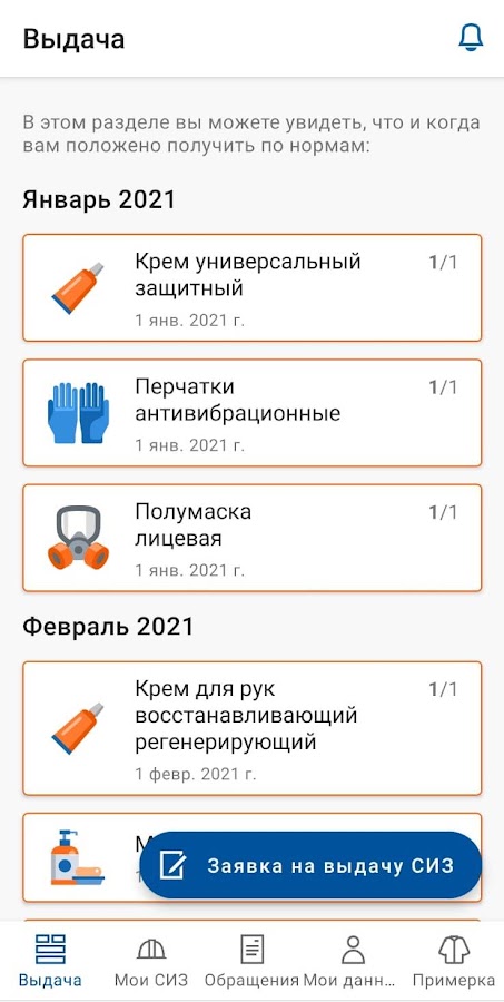 — заявки на получение СИЗ, с предварительной записью по электронной очереди;