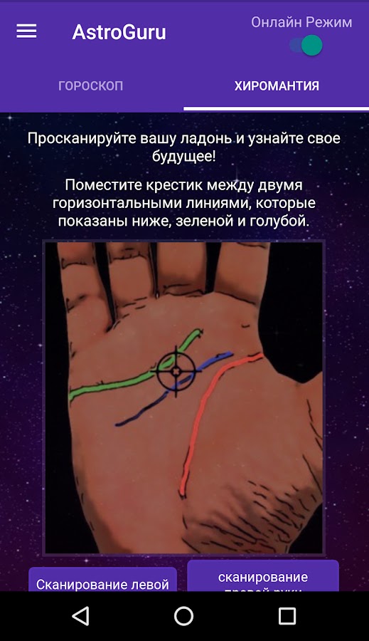 Узнайте о своем состоянии на основании дня рождения и сканирования ладони. Astro Guru использует расширенную обработку изображений для вычислений при считывании всех показаний ладони и сканера. Наша астрология, как и Нострадамус, основана на древних ведических методах известных индийских гуруджи.