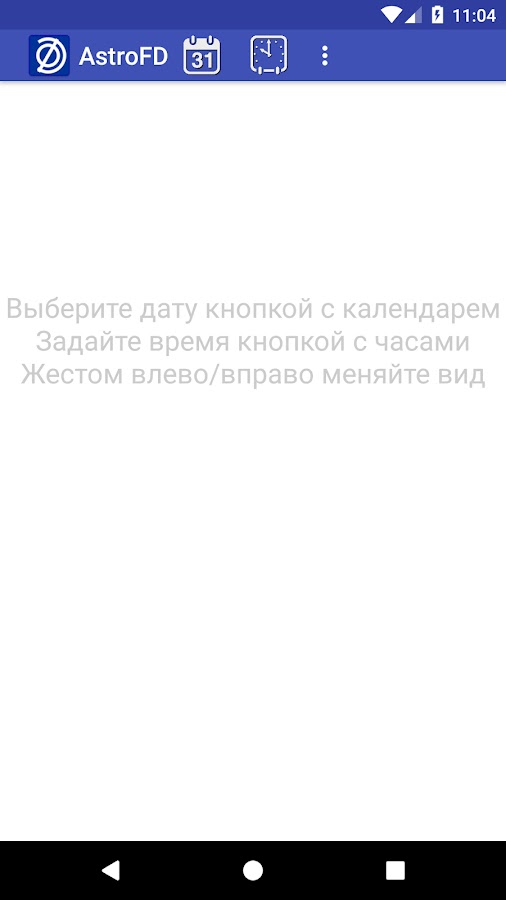 Для работы программы необходимо подключение к Интернету. Если программа не может получить данные, проверьте обновление — мобильная версия AstroFD активно развивается, что не может не отразиться на формате передаваемых данных.