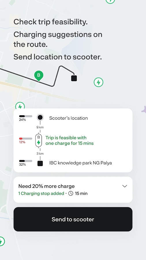 3) Отправьте пункт назначения на самокат Ather еще до того, как сядете на него.