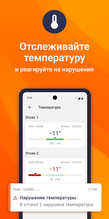 • Отслеживать в режиме реального времени температуру перевозимых грузов;