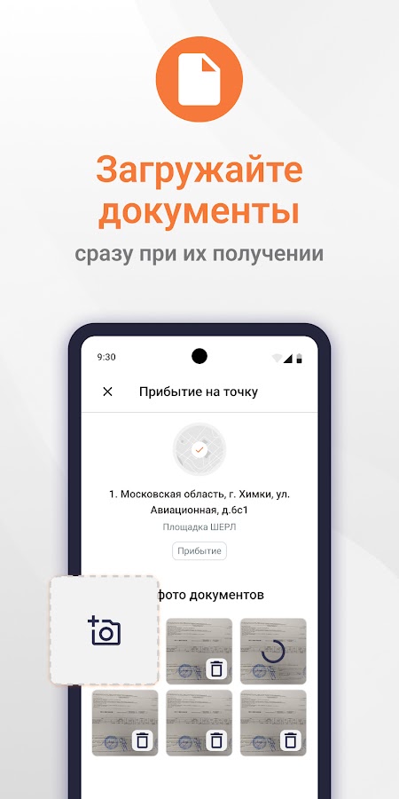 • Отправлять диспетчеру фото оформленных документов к пройденным точкам рейса;