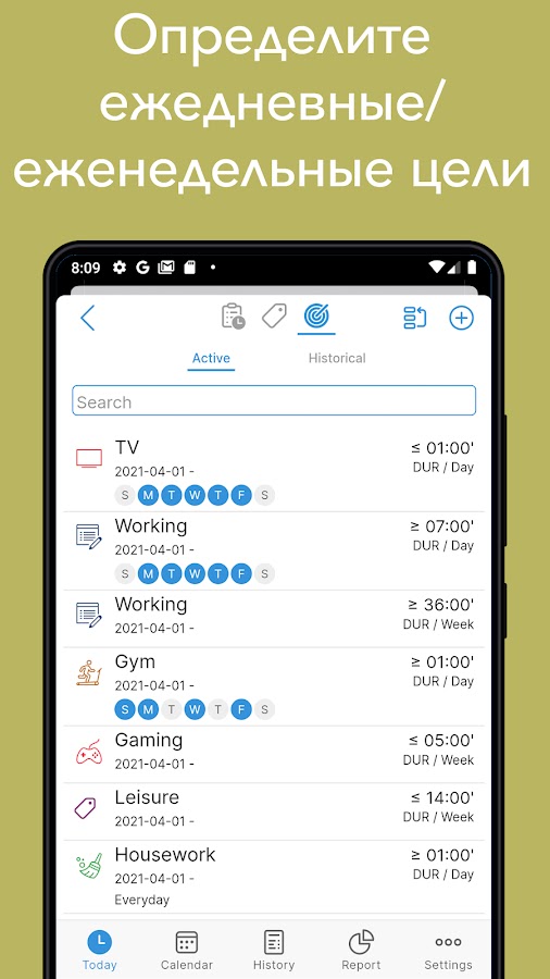 — Настройка задач: есть сотни уникальных значков на выбор. Вы также можете раскрашивать задачи для персонализированного отслеживания времени.