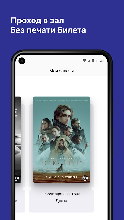 Получайте электронные билеты прямо в приложении. Просто предъявите код на экране вашего устройства при входе в кинозал.