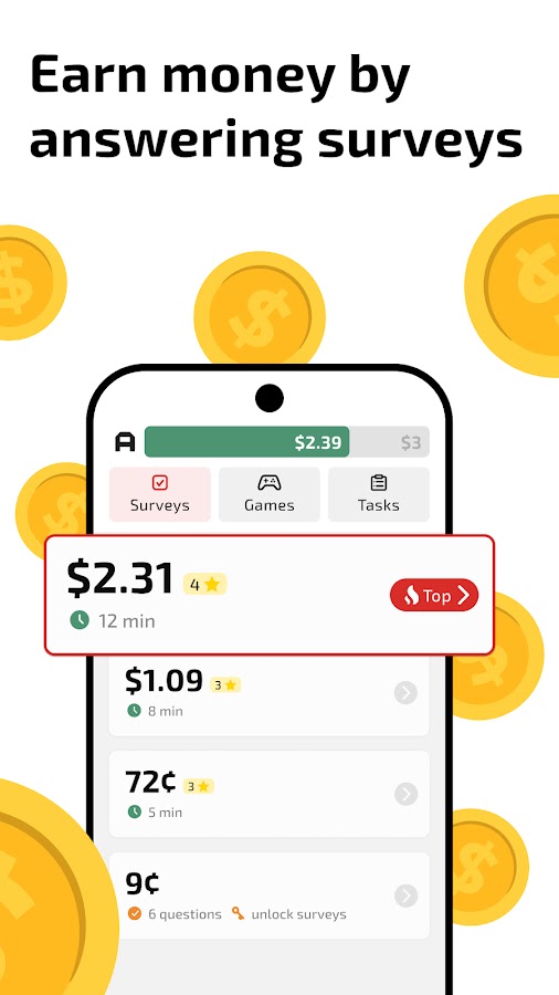 Перестаньте пролистывать страницы в социальных сетях и вместо этого зарабатывайте деньги, играя в игры. В отличие от сложных систем, основанных на баллах, AttaPoll позволяет вам точно видеть, сколько вы зарабатываете, в режиме реального времени. Эврика! Проводите опросы за деньги, быстро выводите деньги и наслаждайтесь полным контролем над своими заработками. Неважно, проводите ли вы один опрос или пять опросов, если вы достигли минимума для вывода средств в размере 3 долларов США, вы можете вывести средства любым способом оплаты по вашему выбору. Это бесплатные деньги, поэтому тратьте их, как хотите; подарочные карты, PayPal или Revolut. AttaPoll — одно из самых надежных бесплатных приложений для заработка денег.