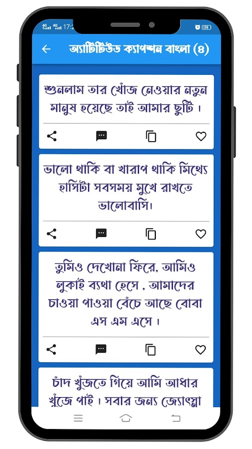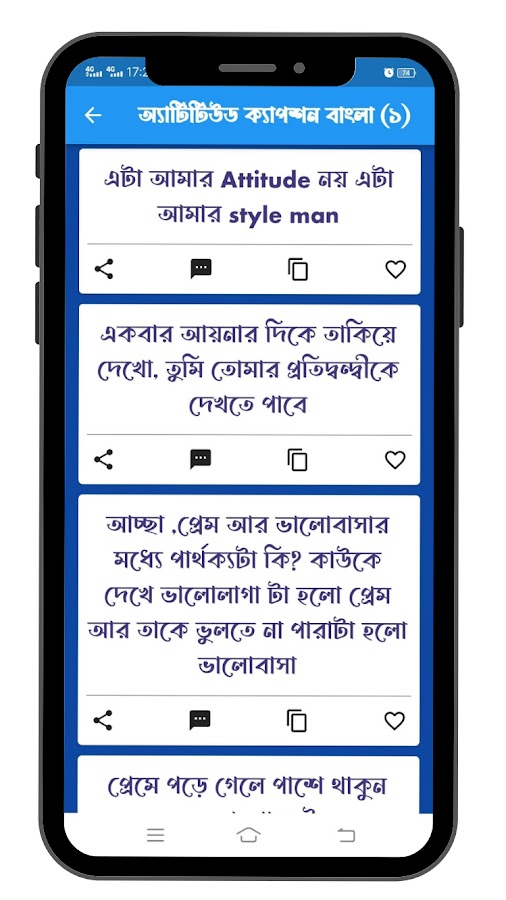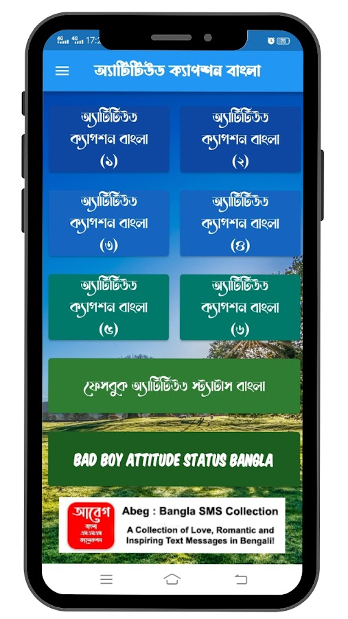 এটিটিউড ক্যাপশন বাংলা (এটিটিউড স্ট্যাটাস বাংলা) অ্যাপটিতে বিভিন্ন বিভিন্ন এটিটিউড ক্যাপশন পাবেন আপনি আপনার ফেসবুক, ইন্সটাগ্রাম ও এসএমএস মাধ্যমে শেয়ার করতে পারবেন।।।