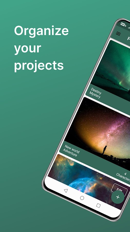 Это приложение идеально подходит как для профессиональных писателей, которые ищут место, где можно оставить свои идеи и организовать себя, так и для новых писателей, которые ищут место, чтобы начать (мы разработали множество рекомендаций, чтобы понять тип персонажей, дуги и способы их развития).