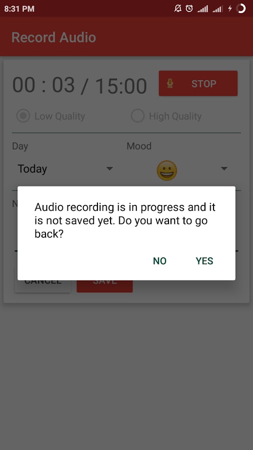 Это просто цифровой дневник. ваш дневник будет сохранен в виде зашифрованных голосовой клип и безопасно. только вы можете получить доступ к этим голосовых клипов.