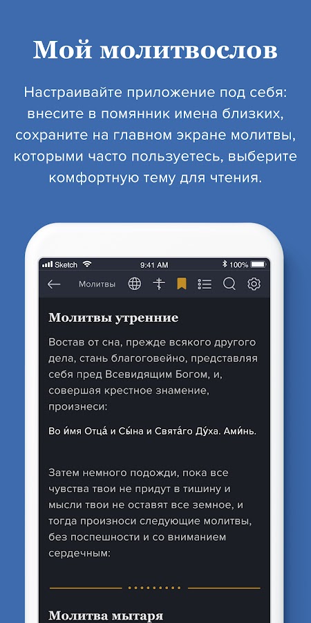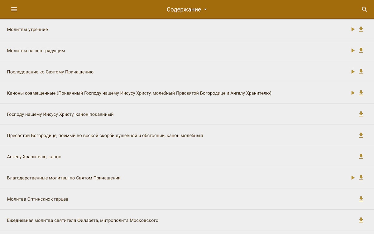Мы собрали основные молитвы, каноны, акафисты, тексты богослужений, книги Священного Писания, чтобы они всегда были под рукой.