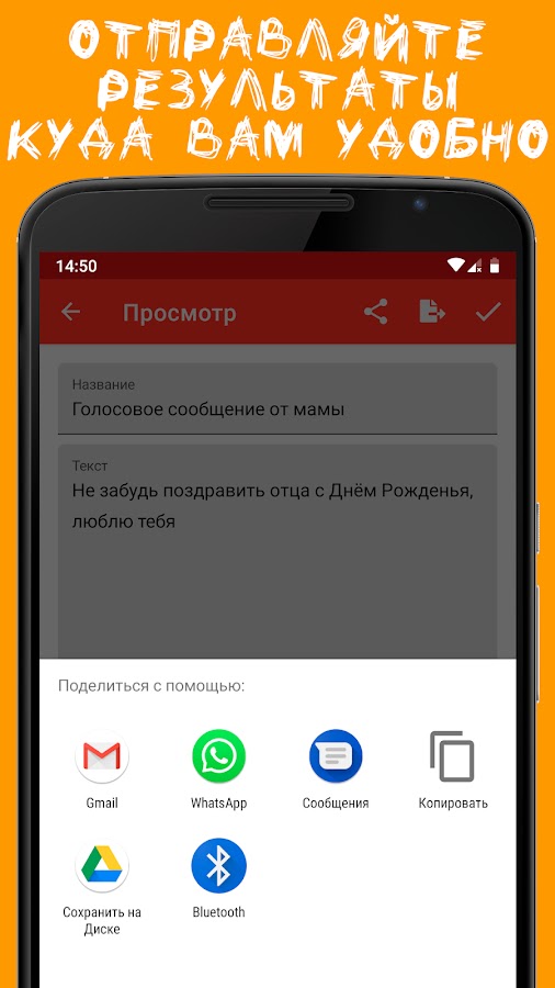 — Возможность “Поделиться” текстом любыми доступными способами телефона