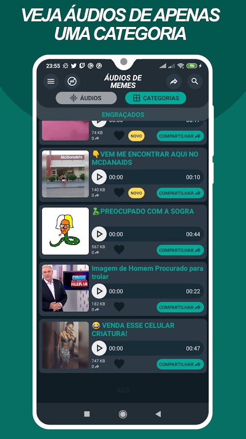 Скачайте приложение Áudios de Memes Engraçado для Android бесплатно - последняя версия (2.1.2) уже доступна для установки на ваш телефон или планшет.