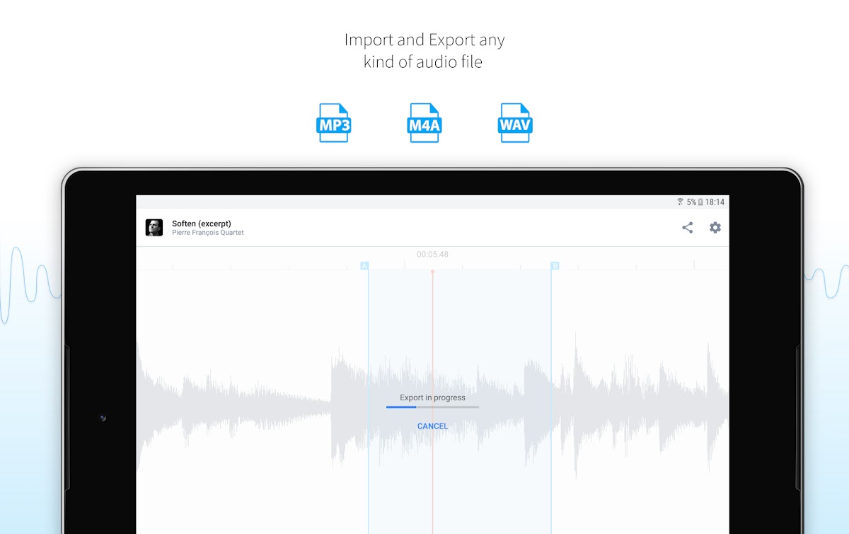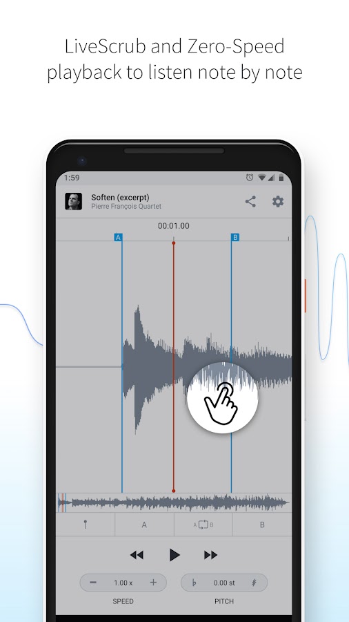 С помощью отмеченного наградами приложения AudioStretch вы можете изменить скорость аудиофайла, не влияя на высоту звука, или изменить высоту звука без изменения скорости. Благодаря уникальной функции LiveScrub ™, вы даже можете воспроизводить звук при перетаскивании формы волны, чтобы вы могли слушать ноту за нотой.