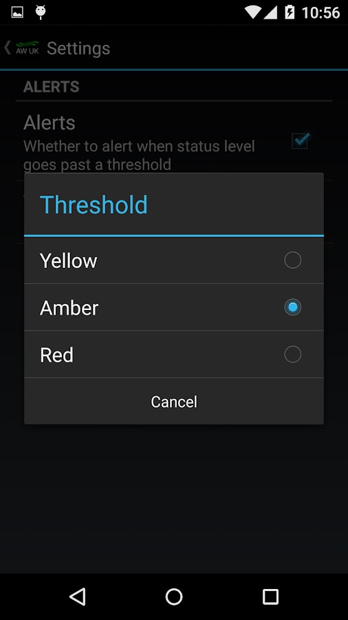 Приложение не предупреждает исторически. Если ваш телефон выключен или не может подключиться к Интернету, когда статус повышается, но уровень снижается до следующего обновления данных, вы не получите оповещения.