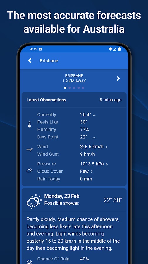 • Высокоточные прогнозы погоды для Сиднея, Мельбурна, Брисбена, Перта, Аделаиды, Хобарта (Новый Южный Уэльс, Виктория, Квинсленд, Западная Австралия, Северная Австралия, Южная Австралия).