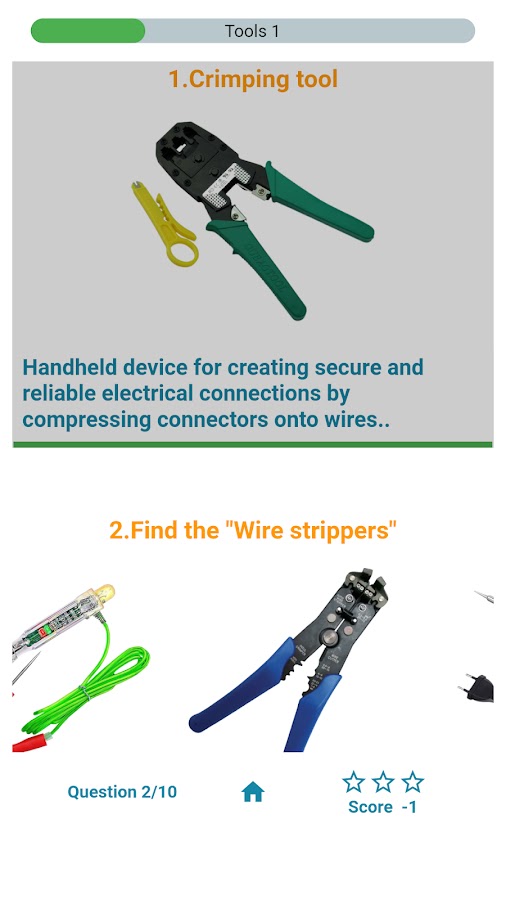 Начните свое путешествие с угадывания инструментов, используемых автоэлектриками. Определите и узнайте о самых специфических инструментах и их функциях. От мультиметров до инструментов для зачистки проводов, этот уровень бросит вызов вашим навыкам распознавания инструментов и улучшит ваше понимание их важности в торговле автомобильной электрикой.