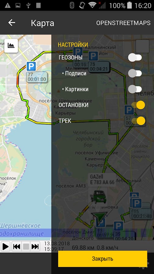 • Просмотр текущего положения всего транспорта / персонала выбранной организации на карте